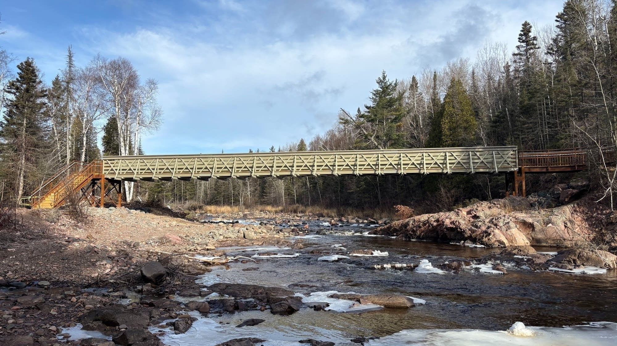More than three years after a previous span was first damaged in major flooding, a new $1 million footbridge has opened above High Falls over the Baptism River in a popular North Shore park.